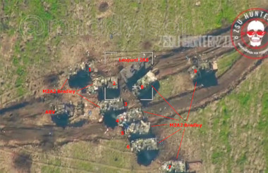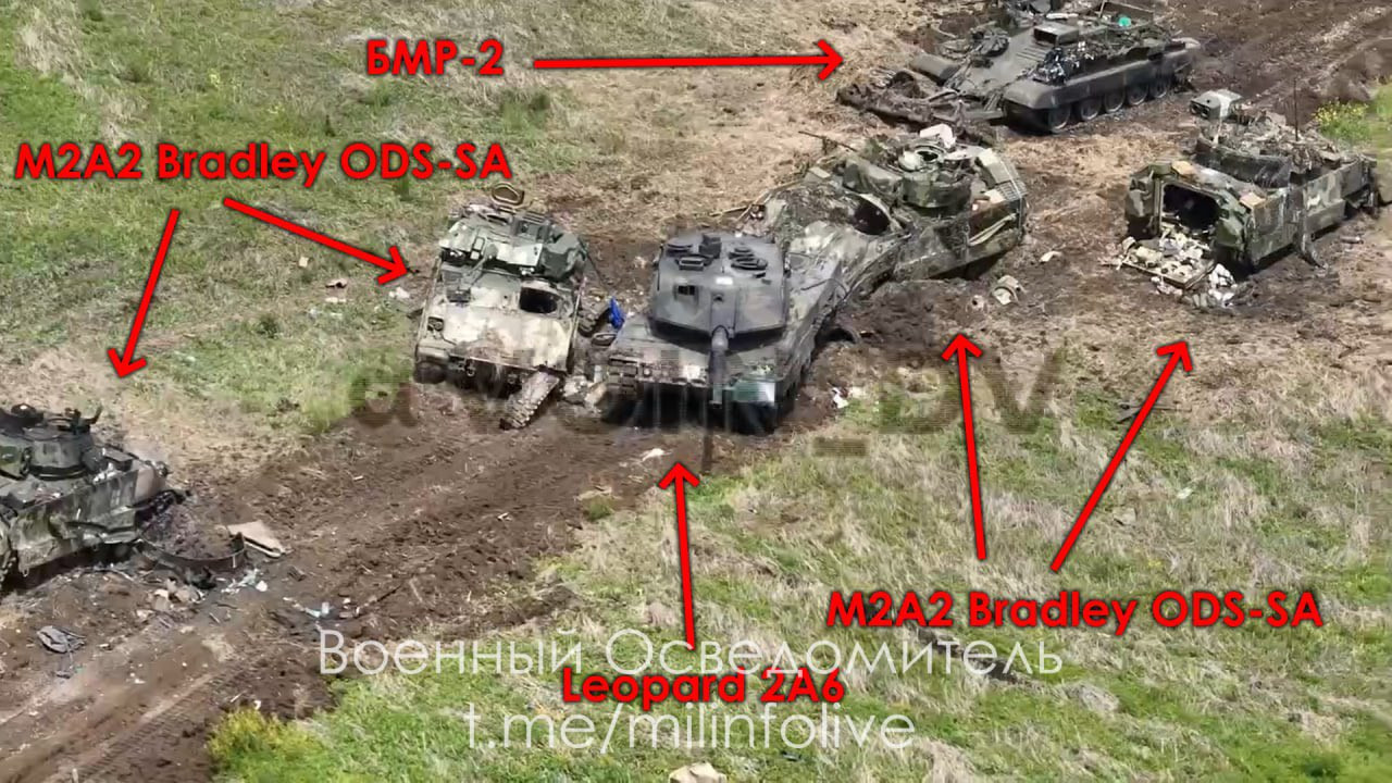 Hier, j’ai publié une photo d’un char Leopard 2A6, de quatre véhicules de combat d’infanterie Bradley et d’un véhicule de déminage de l’ère soviétique, tous coincés les uns à côté des autres dans un champ de mines. Il existe maintenant une meilleure vidéo de cette scène ainsi que d’autres.