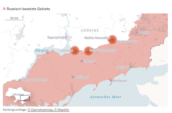 Les informations disponibles ne donnent toutefois qu’un aperçu limité des combats. Malgré la rhétorique triomphante du Kremlin, même les cartes russes provenant de sources proches de l’armée montrent une avancée ukrainienne d’un peu plus de deux kilomètres à Mala Tokmatchka. Ce n’est que dans quelques jours ou semaines que l’on pourra juger si l’offensive obtient au moins des succès partiels ou si elle s’enlise. Dans le meilleur des cas, les troupes ukrainiennes peuvent non seulement ouvrir une brèche dans la première ligne de défense russe, mais aussi percer la ligne de défense principale située derrière ; dans le pire des cas, elles doivent interrompre leur opération au prix de lourdes pertes, sans espoir de faire une nouvelle tentative prochainement.
