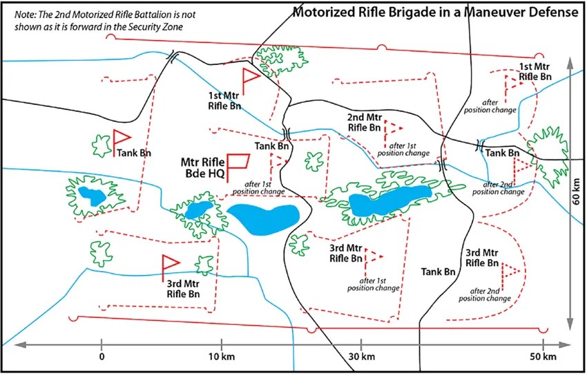 Défense en profondeur idéalisée par une brigade de fusiliers motorisés