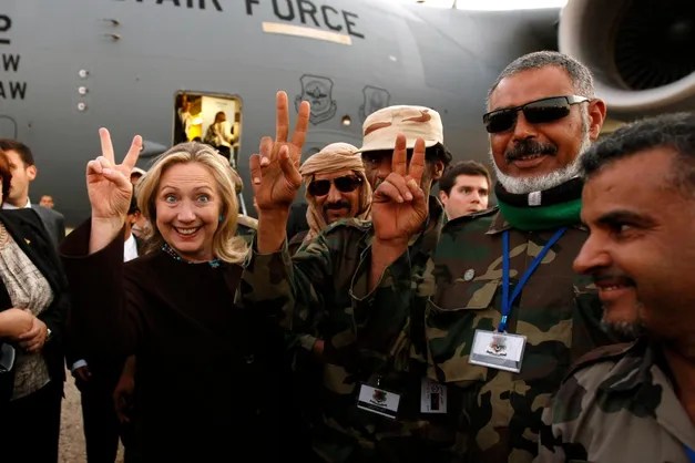 L’épisode a été considéré comme un triomphe. « Nous sommes venus, nous avons vu, il est mort », a plaisanté Mme Clinton à un journaliste en apprenant la nouvelle. Les analystes ont évoqué le mérite d’Obama pour ce « succès ». « Alors que l’opération Unified Protector touche à sa fin, l’alliance et ses partenaires peuvent se réjouir d’un travail extraordinaire, bien fait », ont écrit en octobre 2011 le représentant permanent des États-Unis auprès de l’OTAN, Ivo Daalder, et le commandant suprême des forces alliées en Europe de l’époque, James Stavridis. « Surtout, ils peuvent voir dans la gratitude du peuple libyen que l’utilisation d’une force limitée – appliquée avec précision – peut entraîner un changement politique réel et positif. Le même mois, Hillary Clinton s’est rendue à Tripoli et a déclaré « la victoire de la Libye » en faisant un signe de paix.