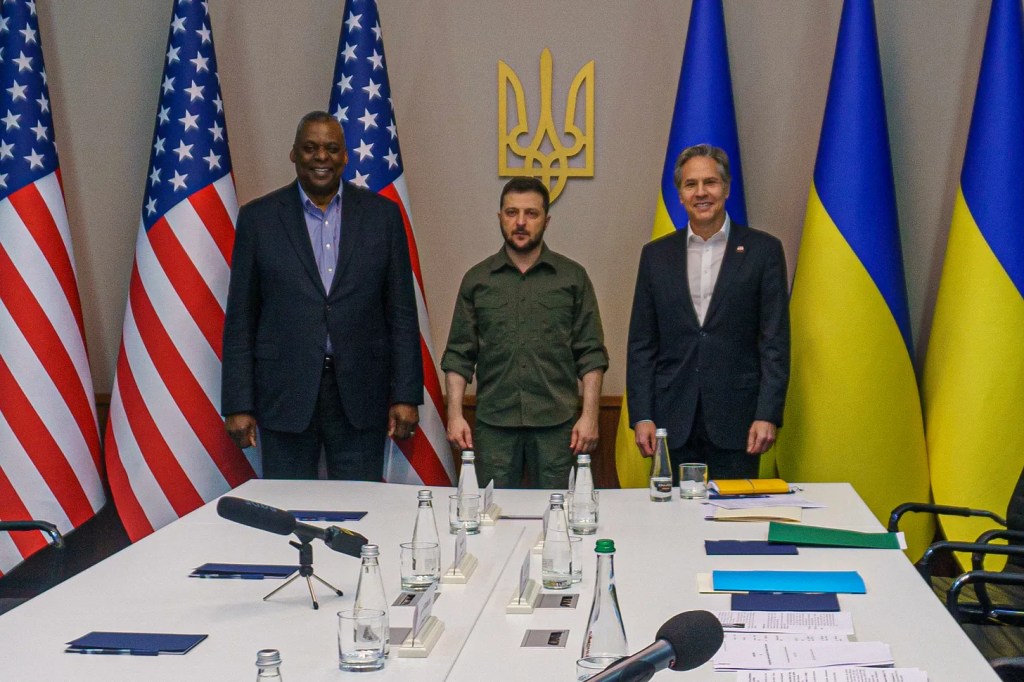 Blinken et Austin avec Zelensky (photo du ministère américain de la Défense)