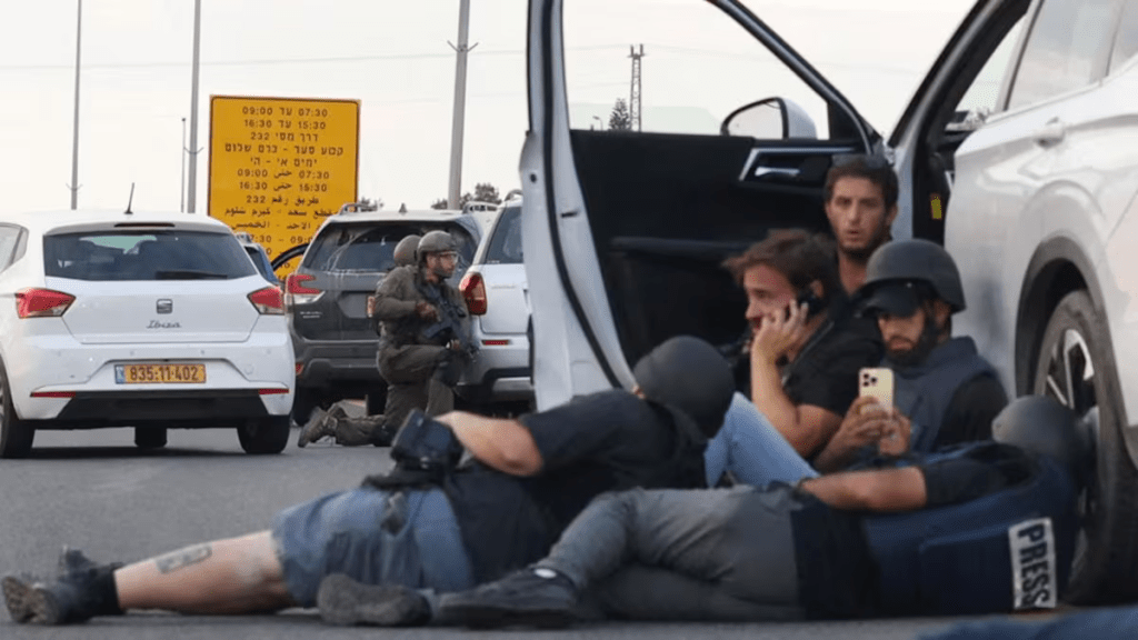Une équipe de la télévision allemande ARD a aussi eu droit vendredi au même traitement de la part des forces de sécurité israéliennes, cette fois dans la région de Hébron, où les membres de l’équipe ont été détenus pendant deux heures et leur équipement confisqué. Ils tournaient eux aussi des images de paysans palestiniens qui avaient apparemment été pris à partie par des colons israéliens.