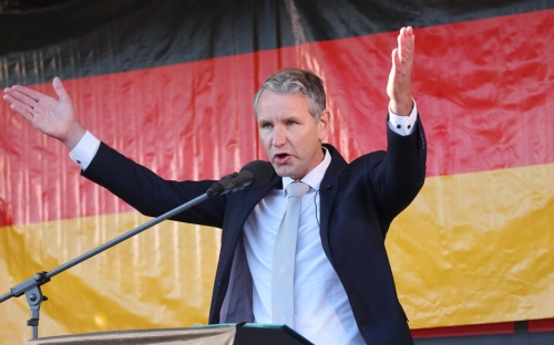 L’opposition patriotique ne se cantonne plus aux seuls Länder orientaux de l’ancienne République démocratique allemande. Ses succès électoraux se produisent malgré les campagnes massives de dénigrement politico-médiatique et les incroyables violences judiciaires perpétrées contre elle. Les services régionaux de protection de la Constitution de 1949 – comprendre une police des pensées, des opinions et de la parole – la surveillent avec attention. Sa figure de proue en Thuringe, Björn Höcke (photo), se retrouve poursuivi parce qu’au cours d’une réunion électorale, il a lancé : « Tout pour notre patrie, tout pour l’Allemagne », ce qui serait une allusion implicite aux « heures-les-plus-sombres-de-l’histoire »…