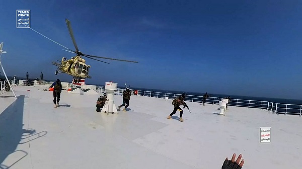 Le Média de guerre des Forces armée yéménites de Sanaa a publié les images vidéo de la saisie du cargo commercial appartenant à un homme d’affaires israélien. Elle avait été réalisée le dimanche 19 novembre, en soutien à la bande de Gaza qui fait l’objet, depuis 45 jours, d’une offensive meurtrière d’une violence inouïe qui a coûté la vie à plus de 13 mille civils Palestiniens dont plus de 5.000 enfants.