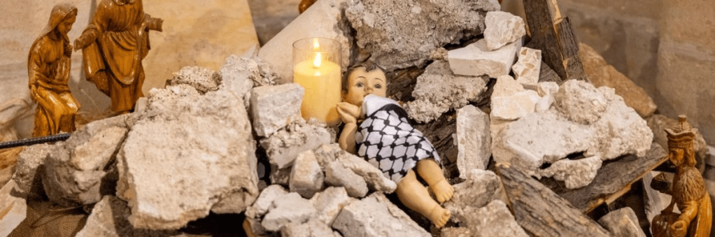 J’ai été frappé par la crèche installée dans l’église évangélique luthérienne de Bethléem après que les chrétiens de la ville ont annulé les célébrations de Noël de cette année. Vous l’avez probablement vue : elle représente la scène de la Nativité, comme toutes les autres, mais l’enfant Jésus nouveau-né est couché dans les ruines d’un bâtiment en béton.
