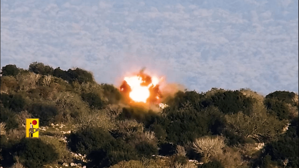 La Résistance islamique au Liban, branche armée du Hezbollah, a diffusé le lundi 8 janvier des images vidéo d’une de ses opérations ayant visé un char israélien de type Merkava sur le site de Ruwaisat al-Assi, à la frontière libano-palestinienne.