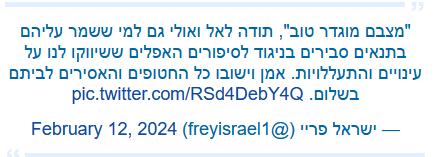 Sur la plateforme X, le journaliste israelien Israel Frey a exprimé sa gratitude parce que les otages ont été ramenés en bonne santé, contrairement aux assertions relayées sur le mauvais traitement qu’ils subissaient.