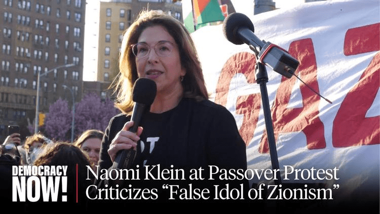 Klein affirme que l’idéologie sioniste « … est une fausse idole qui assimile la liberté juive aux bombes à fragmentation qui tuent et mutilent les enfants palestiniens. Le sionisme est une fausse idole qui a trahi toutes les valeurs juives, y compris la valeur que nous accordons au questionnement – une pratique ancrée dans le Seder avec ses quatre questions posées par le plus jeune enfant. . . Y compris l’amour que nous portons, en tant que peuple, aux textes et à l’éducation. Aujourd’hui, cette fausse idole justifie le bombardement de toutes les universités de Gaza, la destruction d’innombrables écoles, d’archives, de presses d’imprimerie, l’assassinat de centaines d’universitaires, de journalistes et de poètes. Elle appelle cela le « scholasticide », qui est parallèle à l’incendie des bibliothèques et des synagogues par les nazis.