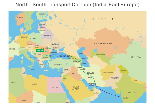 À noter que l’accord intergouvernemental signé le 12 septembre 2000 entre la Russie, l’Iran et l’Inde a jeté les bases du corridor de transport Nord-Sud. En général, plusieurs pays ont ratifié l’accord. (République d’Azerbaïdjan, République de Biélorussie, République de Bulgarie, Inde, République islamique d’Iran, République du Kazakhstan, République kirghize, Sultanat d’Oman, Fédération de Russie, République du Tadjikistan, République de Turquie, Ukraine). L’objectif de ce corridor est de réduire le temps de livraison des marchandises de l’Inde à la Russie, ainsi qu’à l’Europe du Nord et de l’Ouest (le temps de livraison le long de l’itinéraire actuel est de plus de 6 semaines, et grâce au corridor « Nord-Sud », il devrait être de 3 semaines).