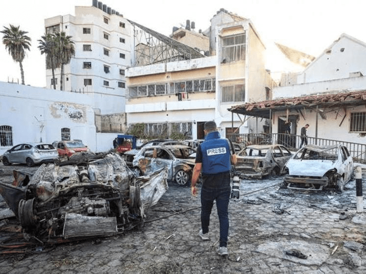 Selon CNN, des centaines de personnes s’abritaient dans une ancienne école à Nuseirat lorsque deux roquettes ont été tirées.