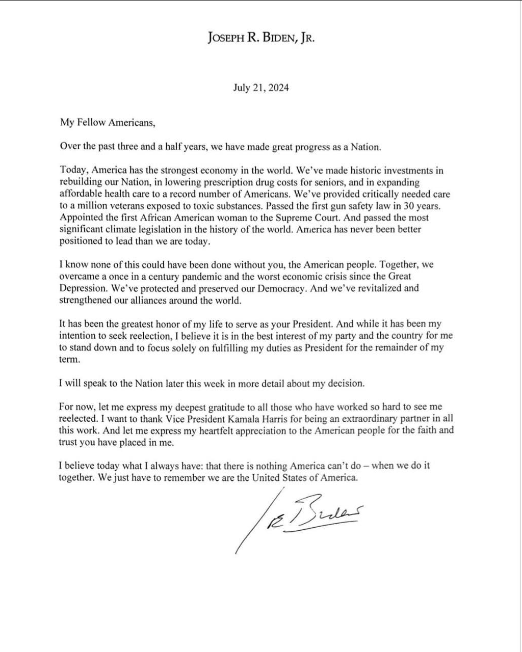 Le président Biden a annoncé sur les réseaux sociaux qu’il mettait fin à sa campagne de réélection. Il n’a pas donné le nom d’un remplaçant préféré sur le ticket.