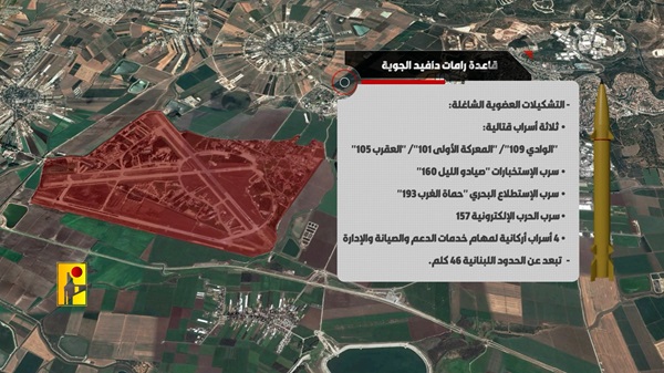 Dans la vidéo, Média de guerre précise que les images ont été prises le mardi 23 juillet. Elles comportent une observation précise de cette base aérienne également appelée Ezer Weizman. Son code militaire étant « Aile militaire numéro 1 », elle est la seule base militaire aérienne au nord.