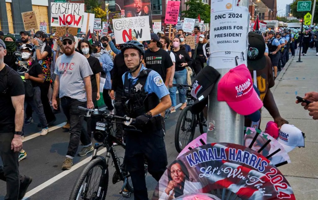 Mais ceux qui se concentrent réellement sur la politique et sur le fait que les États-Unis soutiennent le génocide ne se laissent pas facilement berner par ces gestes superficiels. Ils ne se laisseront pas convaincre par de vagues changements de « ton » ou par des discours non professionnels du type « je vous vois, je vous entends ». Ainsi, cette semaine à Chicago, la ville où la diaspora palestinienne est la plus nombreuse aux États-Unis, ils ont maintenu leur projet de faire pression sur l’actuel président Biden et sur le probable futur président Harris pour qu’ils acceptent un embargo sur les armes – pour conditionner l’aide à Israël jusqu’à ce qu’il agisse en conformité avec le droit américain et le droit international.