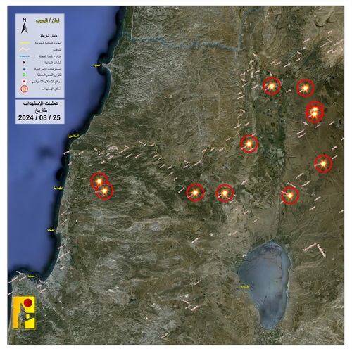 Les 12 opérations de samedi 24 Août ont visé le sites Hermon, al-Raheb (et ses équipements d’espionnage), Misgav Am, Bayad Blida, Hanita, Hadab Yaroun, al-Ramtha, ainsi que le QG de la Brigade occidentale actualisé au sud de la colonie Yaara, et les positions de Zibdine et Rweisat al-Alam situées dans les fermes de Chebaa occupé.