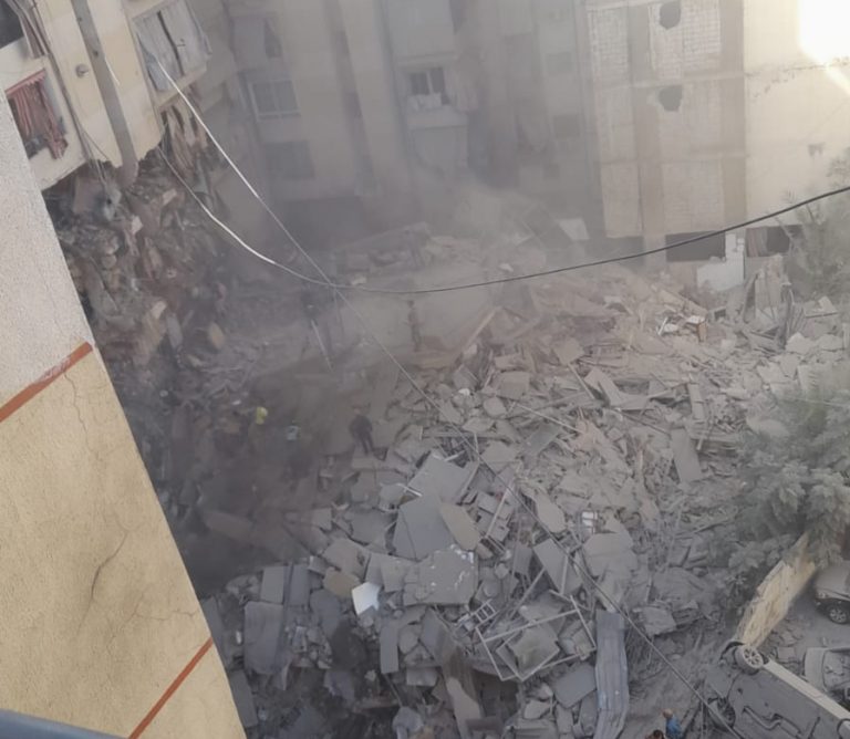 Des avions de chasse israéliens ont mené des raids contre un bâtiment résidentiel dans la banlieue sud de Beyrouth. Ce bâtiment se trouve dans une rue bondée dans la région al-Jamous/al-Qaem .