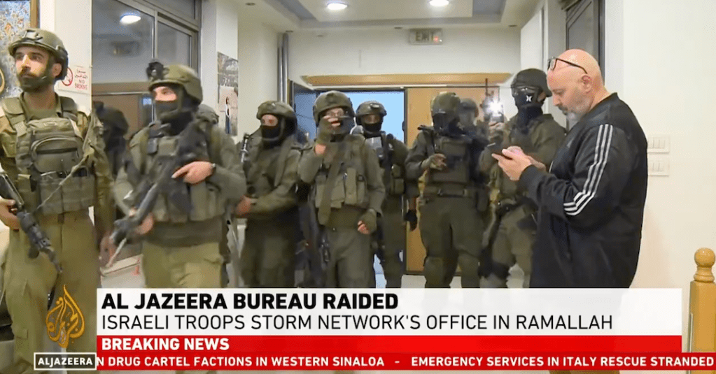 Les troupes israéliennes ont maintenant envahi les bureaux d’Al Jazeera dans la ville de Ramallah, en Cisjordanie, censée être sous le contrôle de l’Autorité palestinienne, et ont mis fin aux activités de la chaîne.