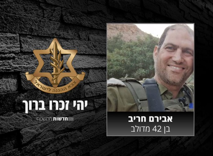 L’armée d’occupation israélienne a en outre autorisé la publication du décès du commandant de réserve Aviram Hariv, abattus par le Hezbollah lors des combats à la frontière sud du Liban. L’officier, qui était un rabbin originaire de la colonie de Dolev à l’ouest de Ramallah, occupait le poste de commandant adjoint du bataillon 9308 au sein de la 228e brigade.