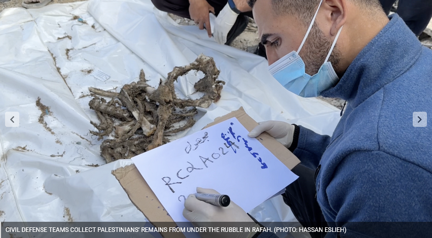 « Dans toutes les zones de l’est et de l’ouest de Rafah, il y a des corps sous les décombres, et on s’en occupe », déclare Al-Homs.