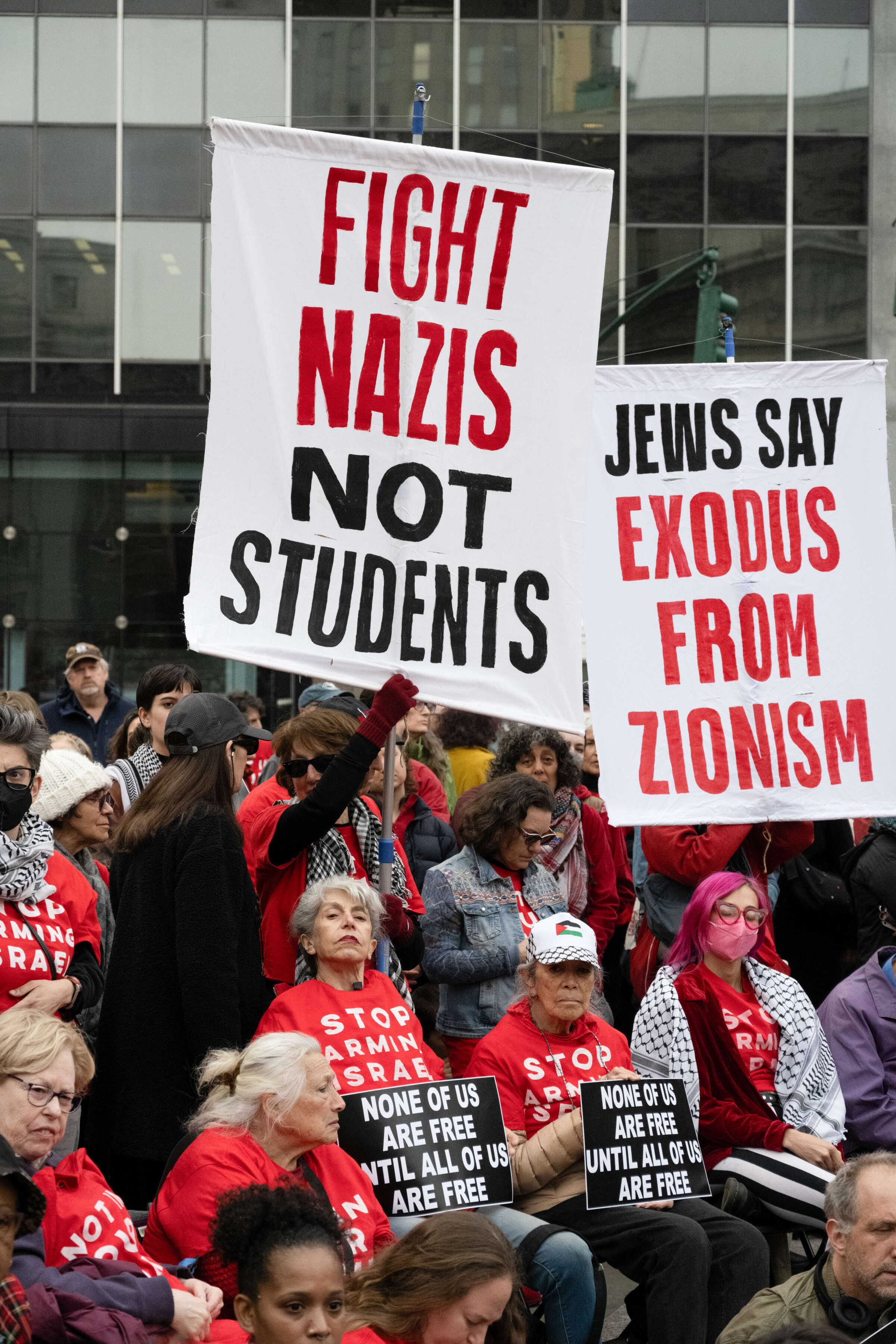 Les leaders de la manifestation ont déclaré que la fête traditionnelle de Pessah ne peut pas être reconnue alors qu’Israël continue de massacrer les Palestiniens et que la Maison Blanche fait disparaître les étudiants qui s’opposent au génocide.