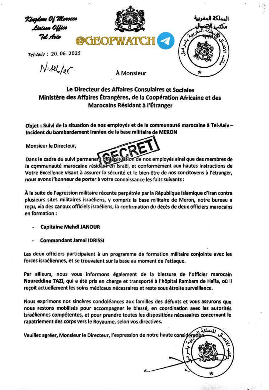 Deux militaires marocains de haut rang ont été tués par un missile iranien qui a frappé la base de Meron.