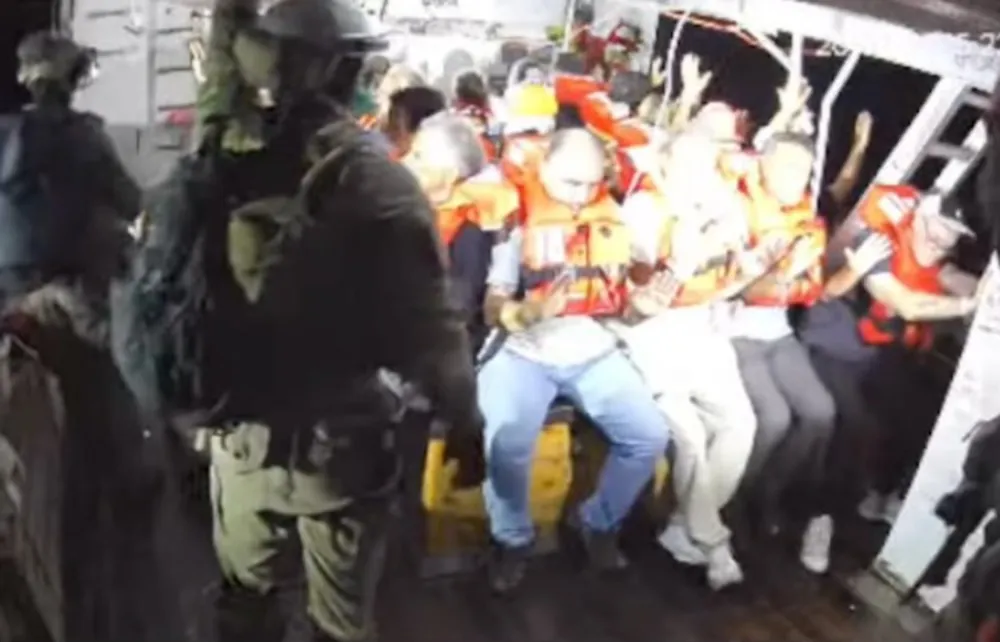 Une diffusion en direct de la Freedom Flotilla Coalition a montré au moins six soldats israéliens montant à bord du navire. Les passagers, des militants de plusieurs pays, étaient assis calmement ensemble, portant des gilets de sauvetage et levant les mains dans une posture pacifique.