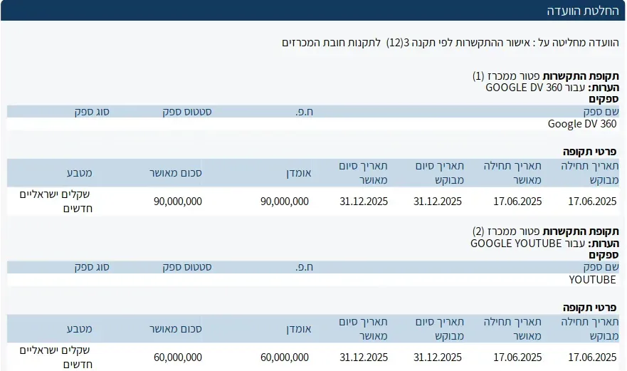« Il y a de la nourriture à Gaza. Toute autre affirmation est un mensonge », affirme une vidéo de propagande publiée fin août par le ministère israélien des Affaires étrangères sur la plateforme de partage de vidéos YouTube de Google, qui a été visionnée plus de 6 millions de fois. Une grande partie de la portée de cette vidéo résulte d’une publicité diffusée dans le cadre d’une campagne publicitaire de 45 millions de dollars (150 millions de shekels) lancée fin juin par Google et le cabinet de Netanyahu, qui n’avait pas été annoncée au préalable. Le contrat, qui concerne à la fois YouTube et la plateforme de gestion des campagnes publicitaires de Google, Display & Video 360, qualifie explicitement la campagne publicitaire de hasbara, un mot hébreu dont la signification se situe entre relations publiques et propagande.