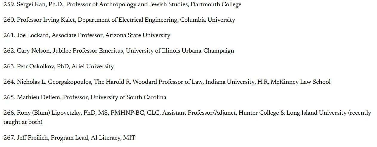Le récit répugnant et inversé de l’UKLFI sur l’Holocauste du XXIe siècle perpétré par Tel Aviv à Gaza aurait été approuvé par près de 500 « spécialistes du droit, de l’antisémitisme, de l’histoire, de l’Holocauste et du génocide ». Cependant, dès la publication, plusieurs signataires ont annoncé avec colère que leurs noms avaient été inclus sans leur consentement, tout en dénonçant le contenu de la lettre dans les termes les plus forts possibles. Un examen attentif révèle que plusieurs signataires apparaissent à plusieurs reprises, que beaucoup sont liés à des groupes de pression sionistes et que d’autres, comme un professeur d’ingénierie électrique, ne sont manifestement pas qualifiés pour porter un jugement sur le génocide.