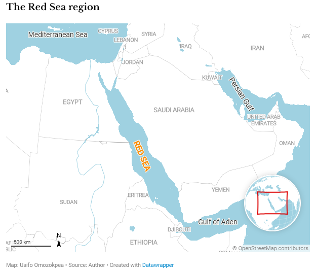 La mer Rouge a une grande valeur stratégique. Elle relie la Méditerranée et l’Indo-Pacifique et constitue une voie maritime pour le commerce mondial et l’énergie. Elle est également bordée par plusieurs États fragiles comme le Soudan, l’Érythrée et le Yémen.