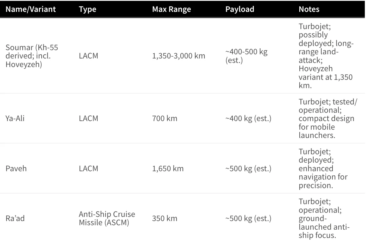 Ils sont propulsés par des turboréacteurs/turbopropulseurs, subsoniques, avec un guidage suivant le relief pour une évasion à basse altitude ; ils sont souvent dérivés de modèles soviétiques/chinois.