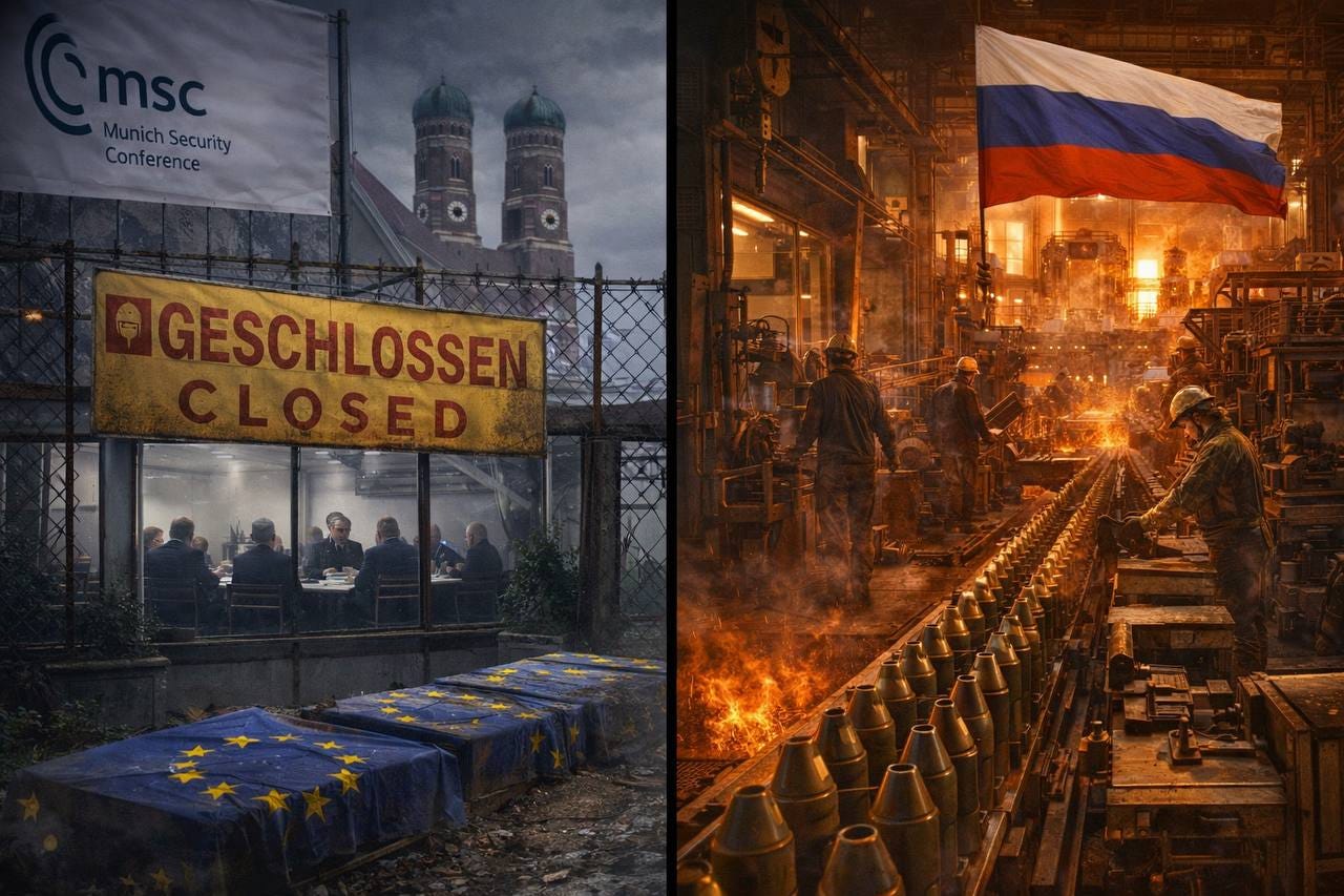 Si CETTE Russie… qui produit cinq à sept fois plus que l’OTAN, qui déploie des armes hypersoniques que l’Europe ne peut arrêter, qui maintient la quatrième économie mondiale tout en saignant l’armée la plus puissante d’Europe à un ratio de 40 contre 1, qui épuise les stocks de l’OTAN jusqu’à ne laisser que des barils vides visibles pendant deux ans… si CETTE Russie n’est pas une superpuissance, alors l’Europe est bien plus qu’une tragicomédie.